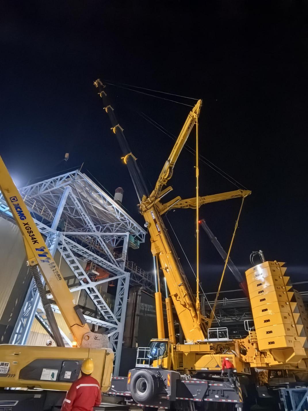 脫水罐施工前,項(xiàng)目部成立“脫水罐施工專班”,由王云鵬牽頭,技術(shù)負(fù)責(zé)人苗雨具體負(fù)責(zé),組織相關(guān)人員對(duì)原溜焦槽拆除和脫水罐安裝方案進(jìn)行研討論證。歷時(shí)兩個(gè)月,經(jīng)多班次、多單位聯(lián)合討論,最終確定溜焦槽采用繩鋸和高頻墻鋸分段拆除,脫水罐在原構(gòu)筑物上增加吊梁,逐件吊裝導(dǎo)向調(diào)整至指定方位,進(jìn)行現(xiàn)場(chǎng)組對(duì)焊接施工。